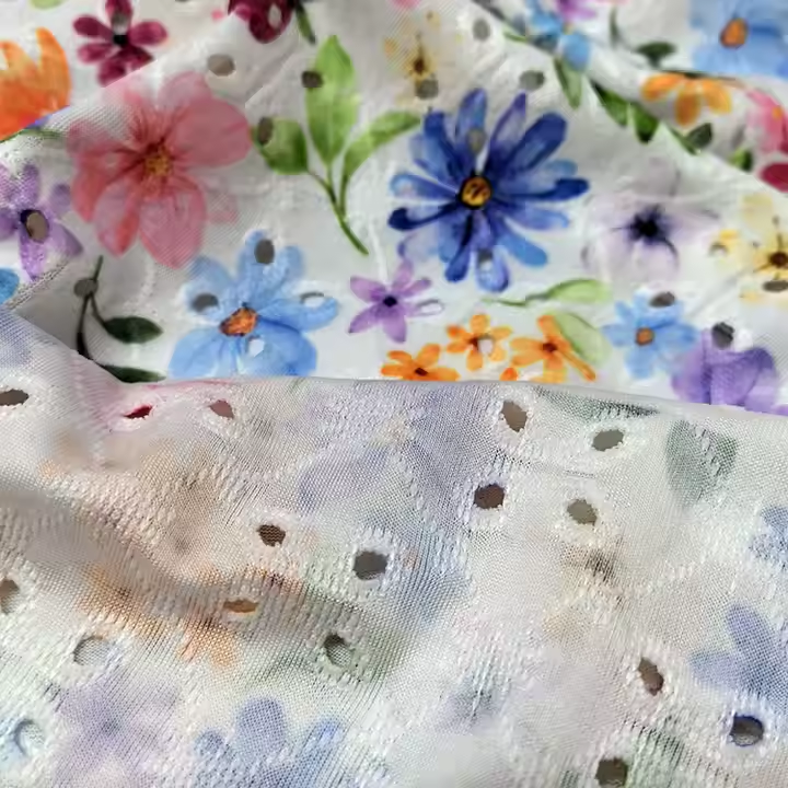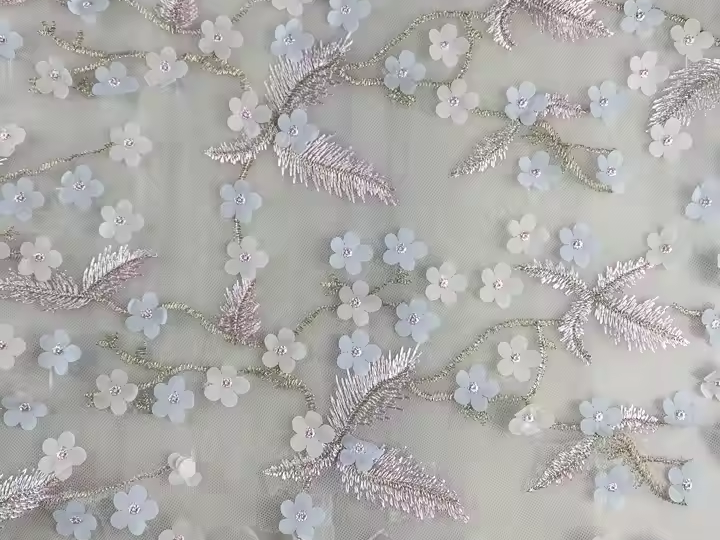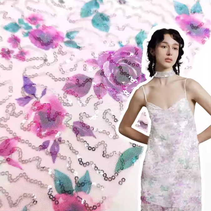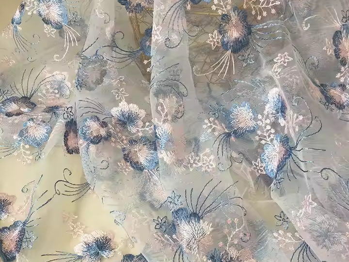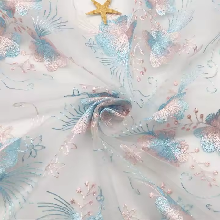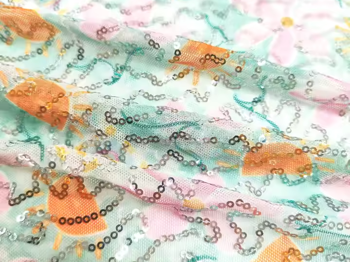 For high-quality stretchy fabrics, consider Suerte Textile’s offerings, such as their custom stretchy sequin hologram soft floral mesh fabric. This fabric provides a 4-way stretch, making it ideal for embroidery projects that require flexibility.