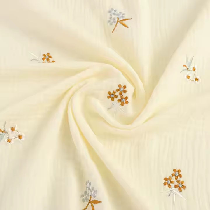 Embroidered crepe fabric combines luxurious texture, intricate designs, and versatility, making it perfect for elegant dresses, blouses, and creative fashion projects.