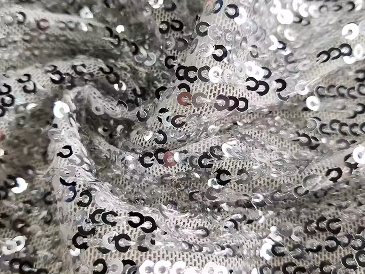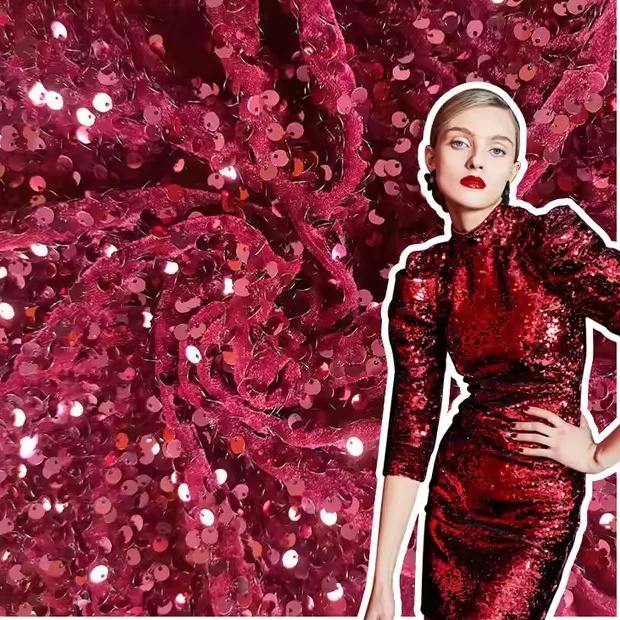 Adding a touch of glamour with shimmering sequins, this fabric is perfect for evening wear and high-fashion garments. It elevates the overall look of any outfit, making it suitable for special occasions.