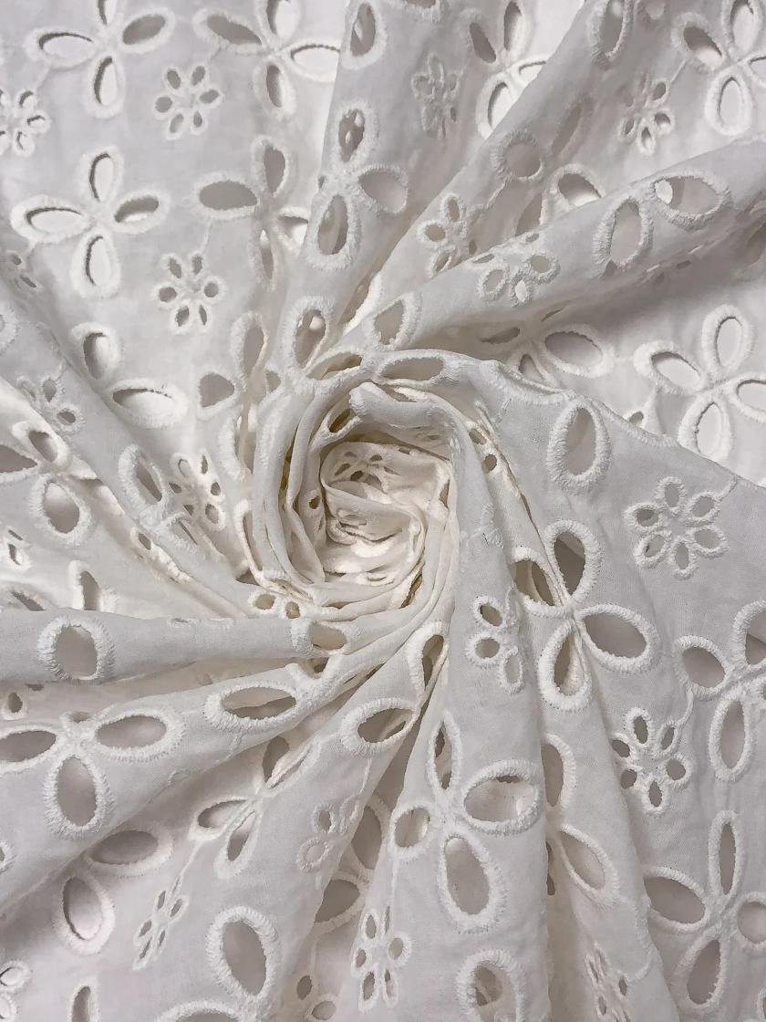 With delicate cut-out patterns, this fabric is often used in both traditional and modern designs for clothing and home textiles. It provides a sophisticated look with intricate details, enhancing the beauty of any textile project.